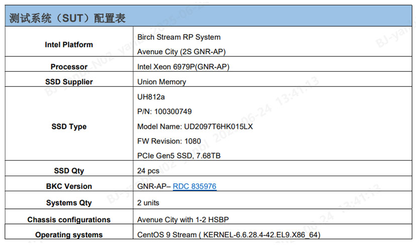 以下是本次憶聯(lián)UH812a在Intel Birch Stream平臺上進行性能測試的相關配置詳情。
