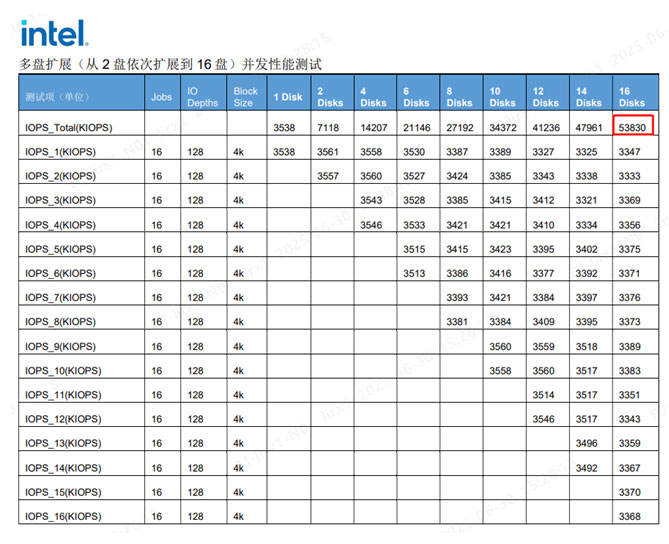 卓越擴展與兼容性:憶聯(lián)UH812a不僅在單盤性能上領先,在多盤擴展場景下(1至16盤)同樣展現(xiàn)顯著優(yōu)勢:多盤并發(fā)性能保持線性擴展,帶寬突破230GB/s;并發(fā)負載遞增時性能穩(wěn)定,IOPS突破5000萬且無瓶頸,盤間性能波動率低于5%。這充分驗證了其卓越的并發(fā)處理能力與強大的協(xié)同擴展能力。