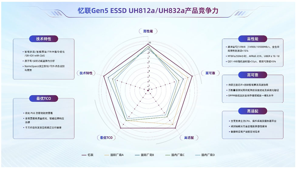近日,憶聯(lián)新一代 PCIe 5.0 企業(yè)級 SSD UH812a 成功通過英特爾數據中心與人工智能事業(yè)部(DCAI)中國區(qū)關鍵組件驗證計劃的性能基準測試,成為首家通過該驗證的國產存儲廠商。測試結果顯示,UH812a 在關鍵性能指標上顯著領先于同代際主流競品,其卓越的性能與穩(wěn)定性充分釋放了 PCIe Gen5 高速總線及平臺內存帶寬潛力,同時有力印證了憶聯(lián)與英特爾在數據中心存儲領域的深度合作成果。