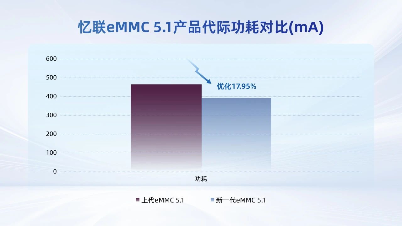 圖2:憶聯(lián)eMMC 5.1產(chǎn)品代際功耗優(yōu)化幅度