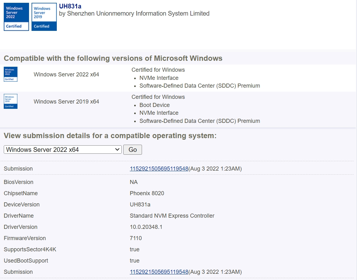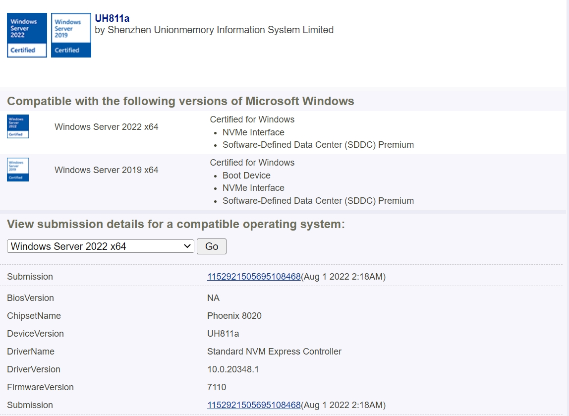 截至目前,除UH811a/UH831a系列外,憶聯另一款企業級固態硬盤UH810a/UH830a系列也已通過微軟WHQL認證。未來憶聯將持續提高SSD產品質量以及兼容性,為支持全面國產化打造堅實的產品力量。
